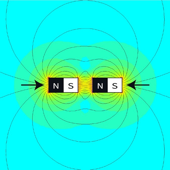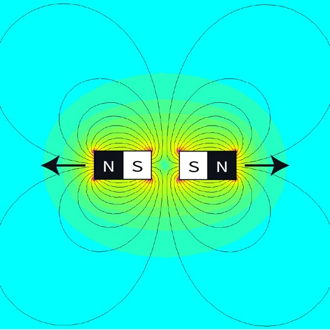 When you put two magnets close to each other, they interact. The rule is simple: opposite poles attract, and like poles repel. The stronger the field, the stronger the magnetic force.
